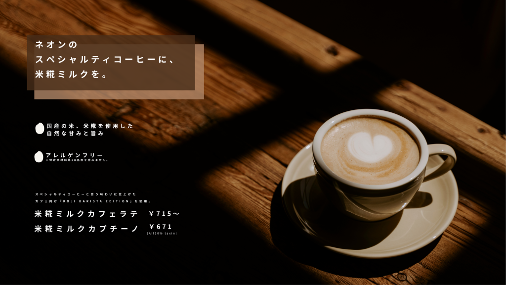 4F NEON CAFEでは限定で、発酵由来の植物性ミルク「KOJI BARISTA EDITION」を使用した